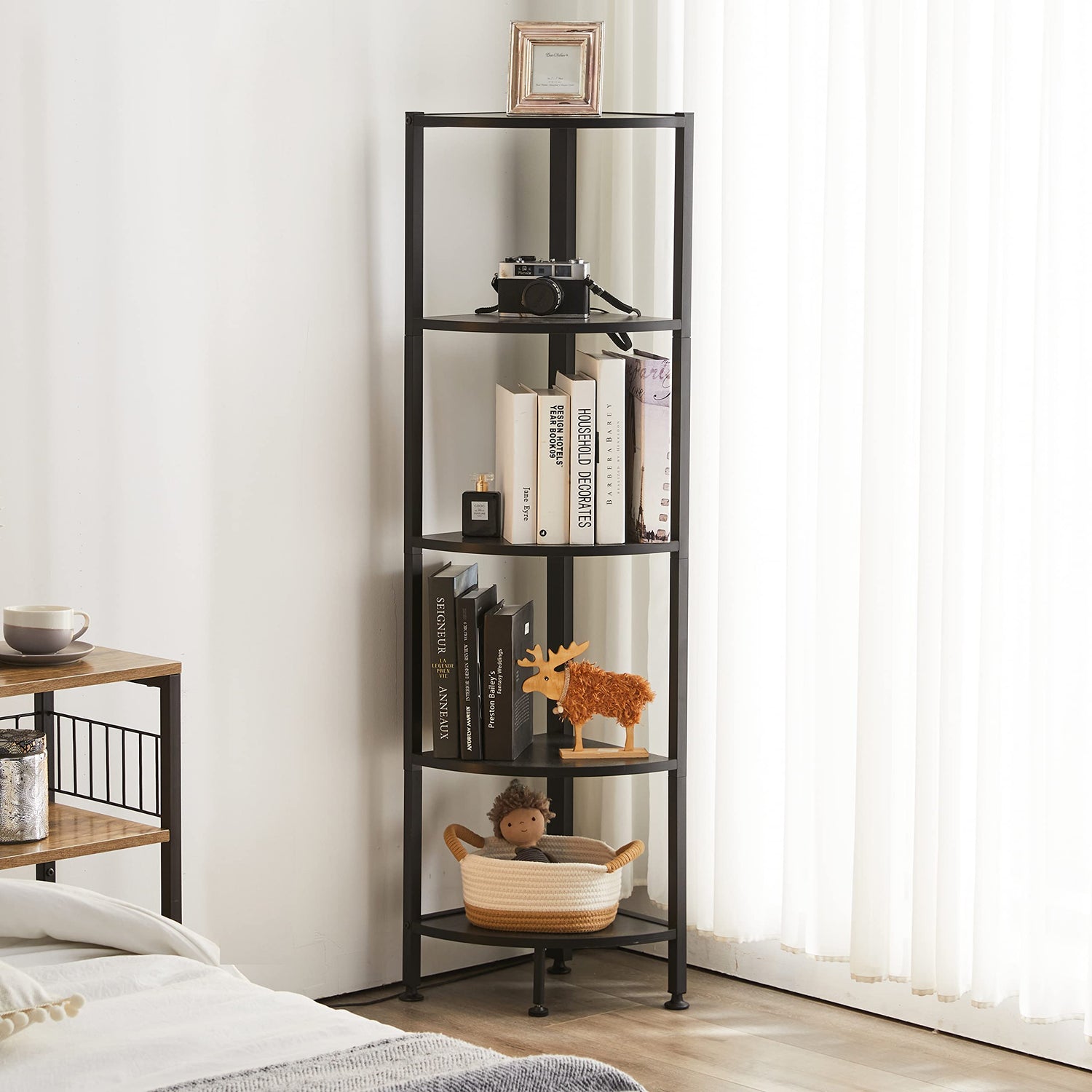 5 Tier Corner Shelf, Industrial Corner Bookshelf