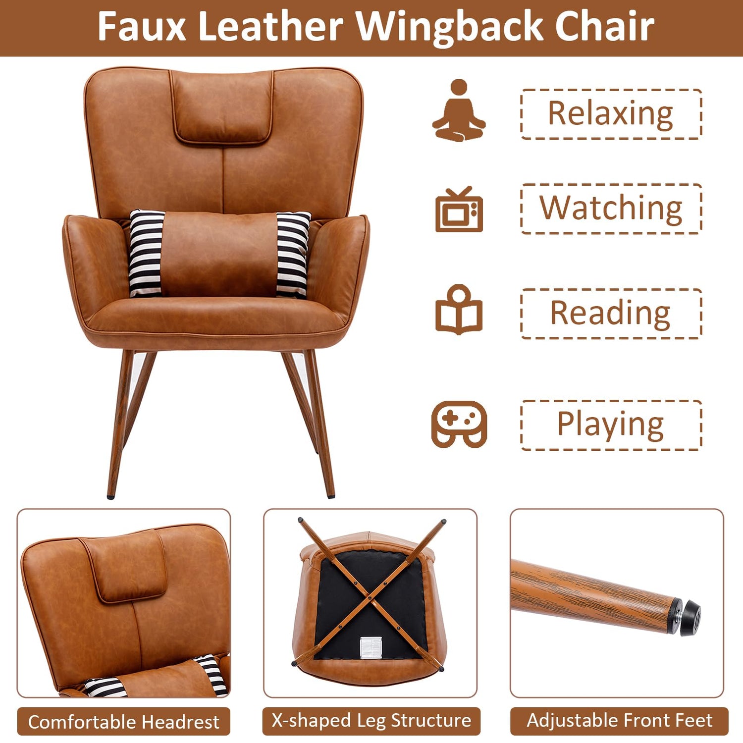 Faux Leather Wingback Chair, Arm Chair, Upholstered Living Room Chairs