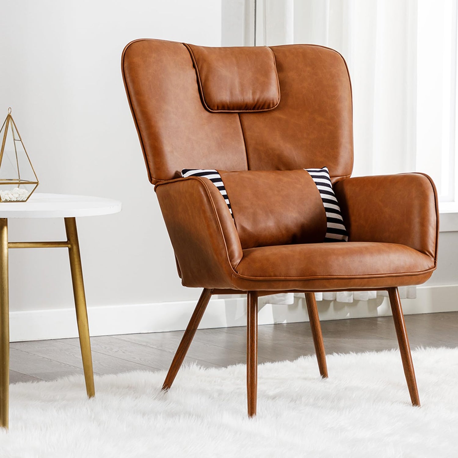 - This leather wingback chair has a raised headrest, providing extra comfort that other chairs living room lack. Included soft rectangular cushion supports your back, releases back pressure.