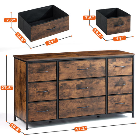 Dresser with 9 Drawers - Fabric Storage Tower, Organizer Unit for Living Room, Hallway