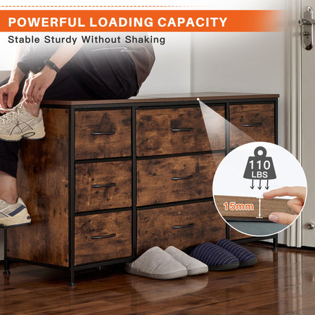 Dresser for Bedroom with 7 Drawers and 2 Shelves TV Stand Dresser with Wooden