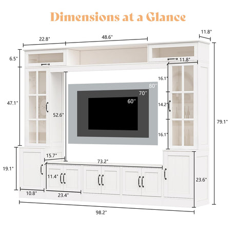 98" Wall Unit TV Stand with LED Lights for TVs up to 80"