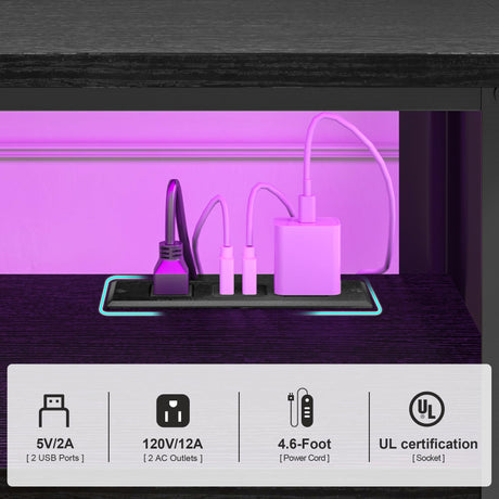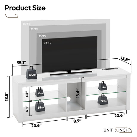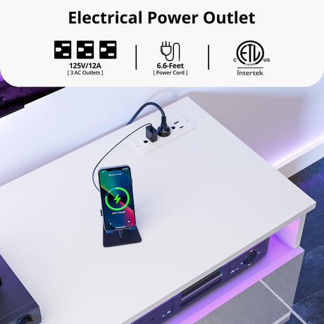 TV Stand for 40-60 Inch TVs with LED Lights & Power Outlets