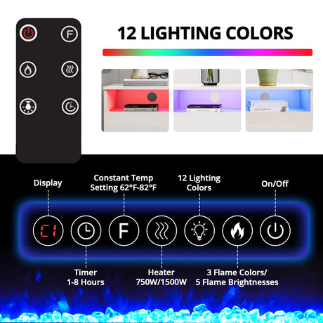 94.5" Fireplace TV Stand with LED Lighting & Charging Station