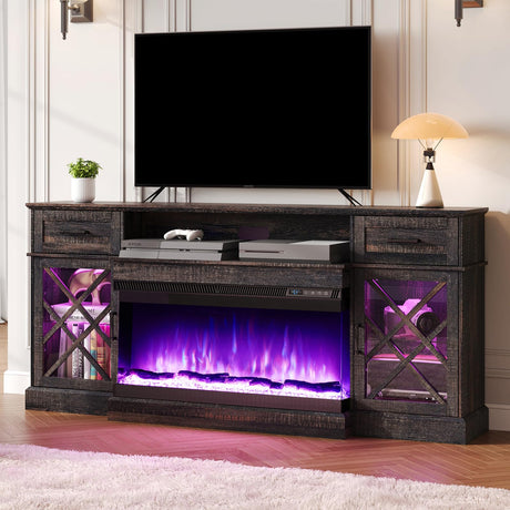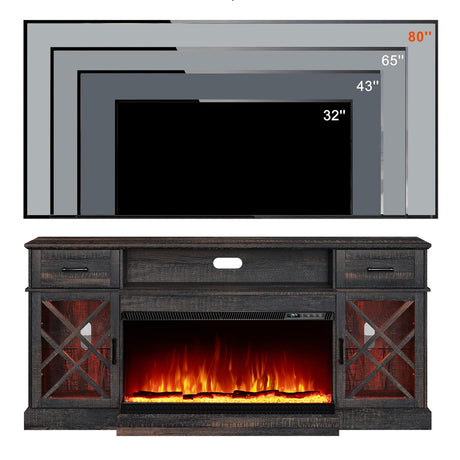 70" LED Fireplace TV Stand with Glass Doors - Black
