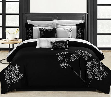 8-Piece Embroidery Comforter Set - Queen Livingston Black