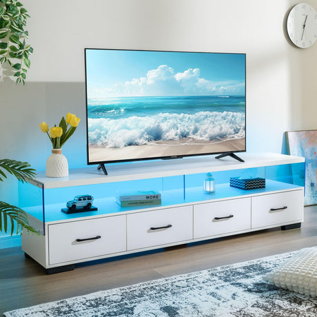 Modern 75 Inch TV Stand with LED Lights and Storage