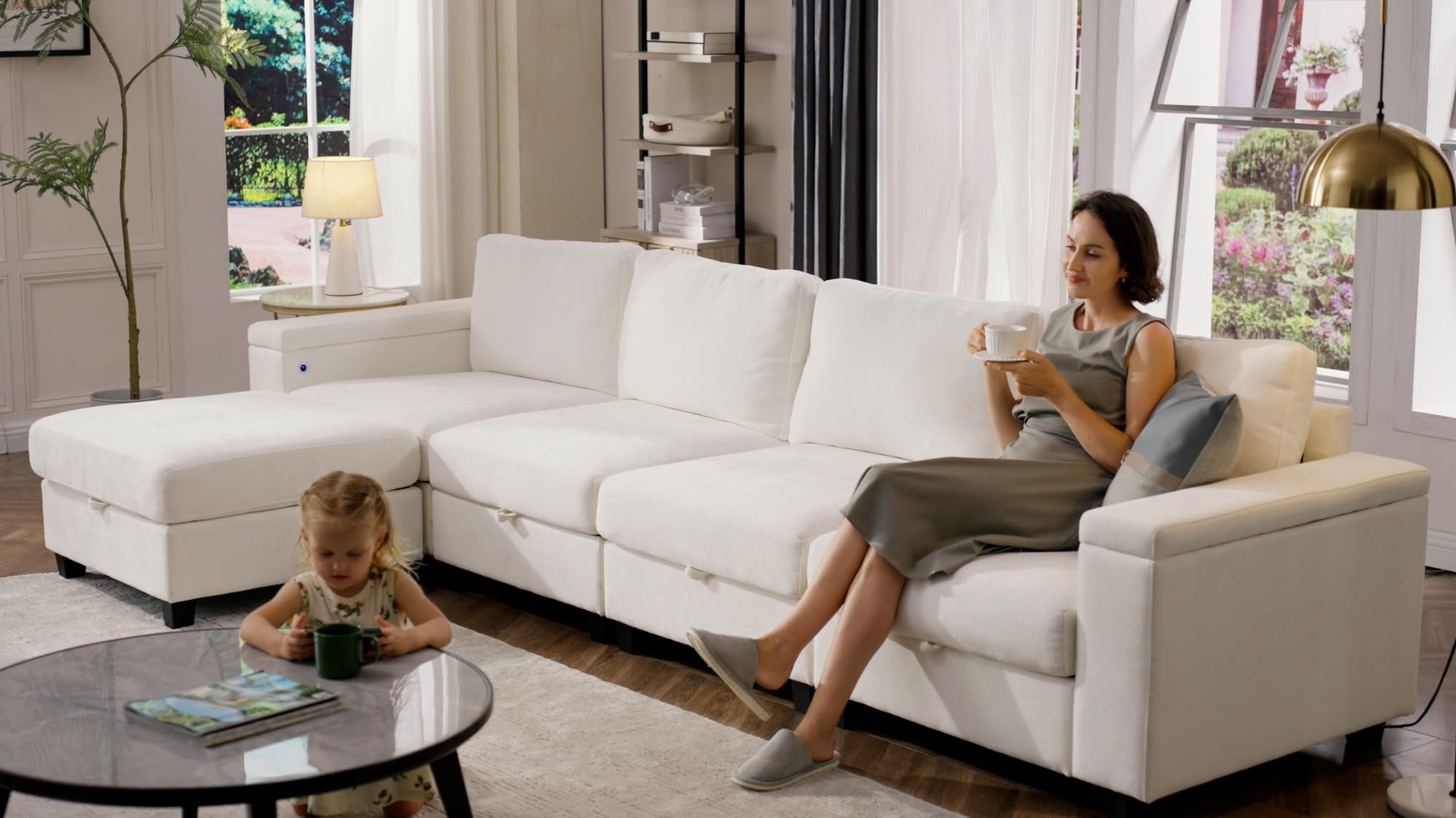 L Shaped Couch with Storage Ottoman Reversible Sofa Sectional for Living Room
