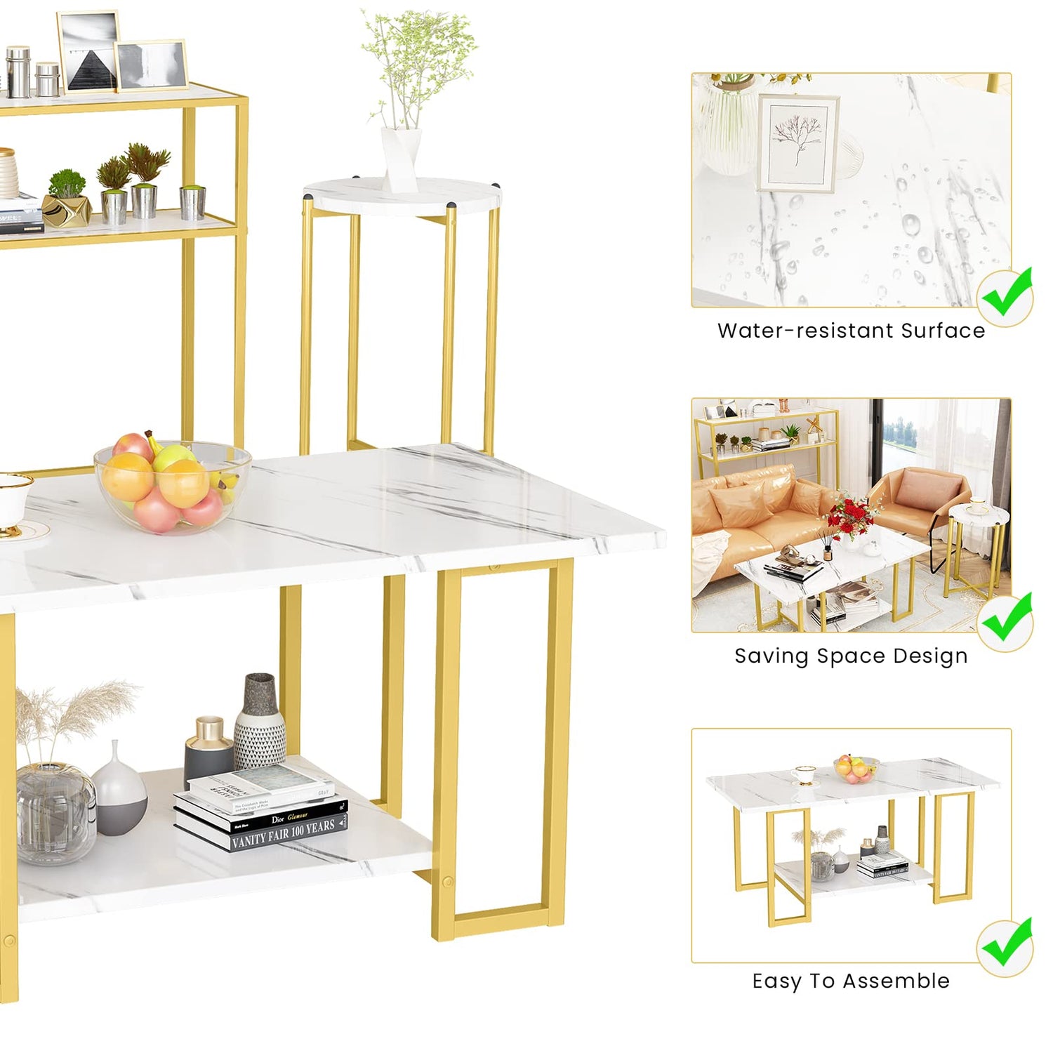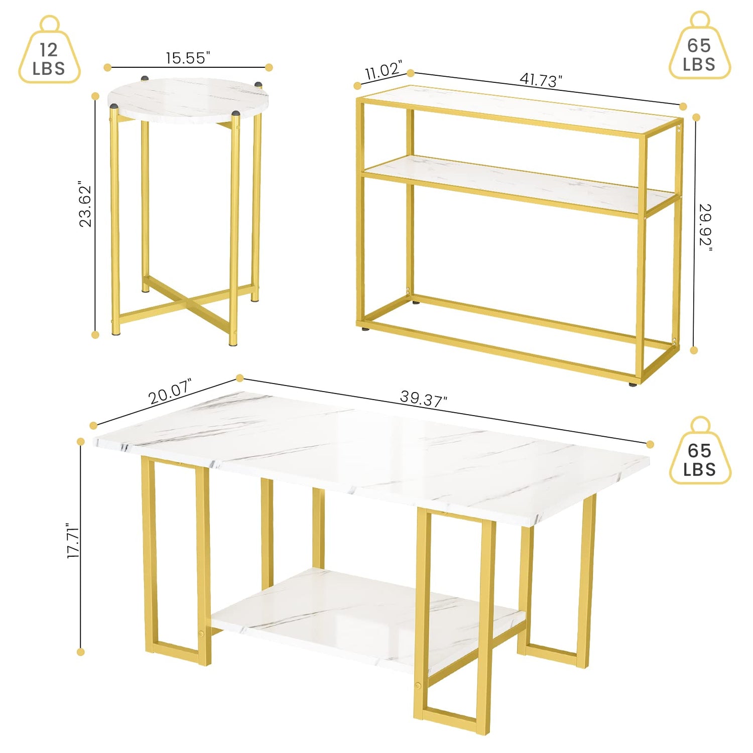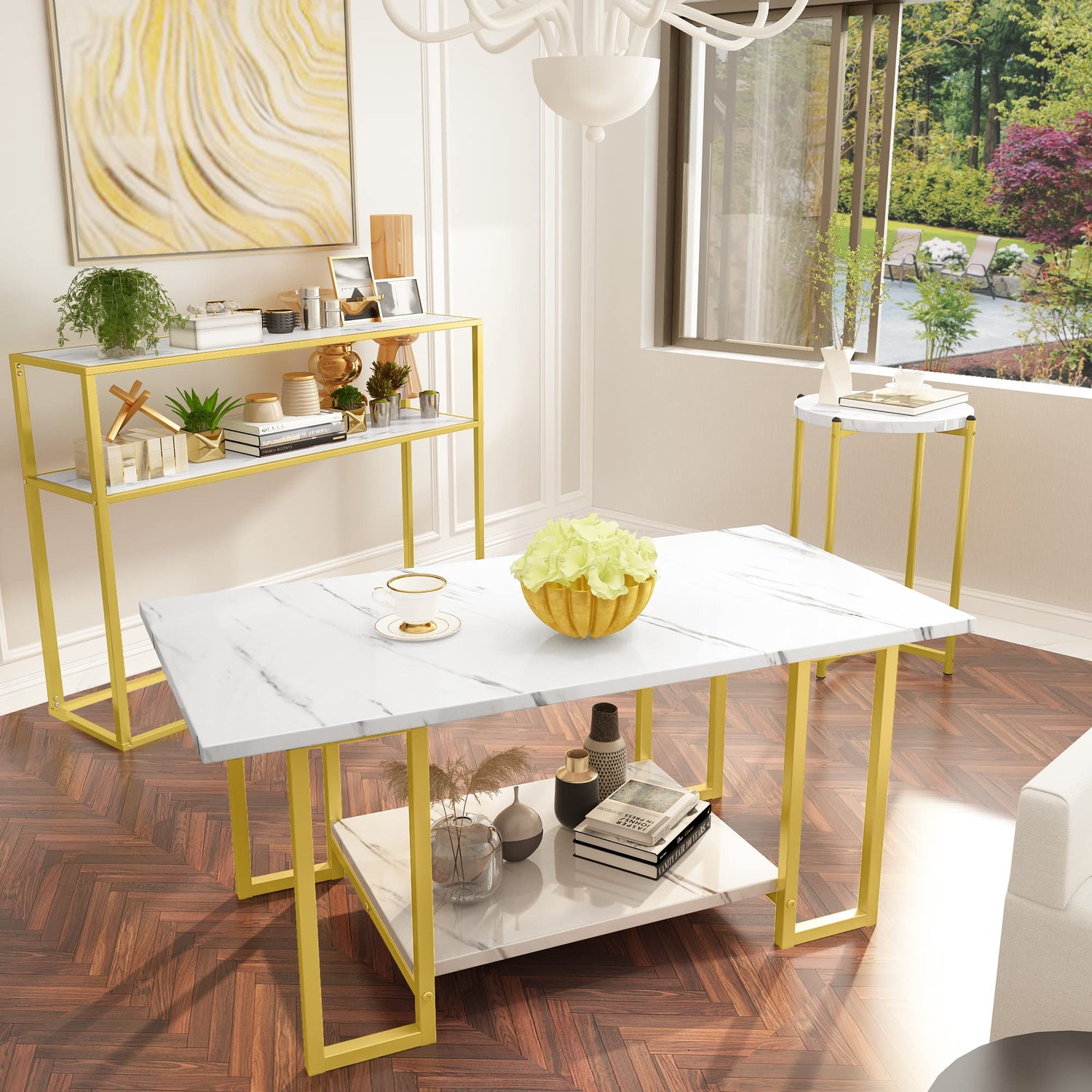 - Modern End Table: This 3-piece coffee table, console table and side table have three tiers of shelving, and the spacious marble top provides huge space for remotes, magazines, vases, and managing living room, lightweight package The design makes it easy to move. This coffee table set is perfect for various rooms in the home, such as the living room, dining room and home office etc.