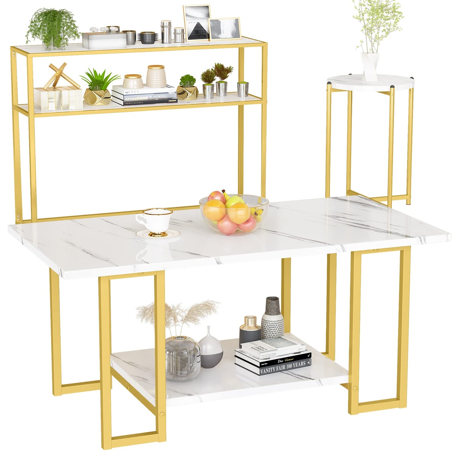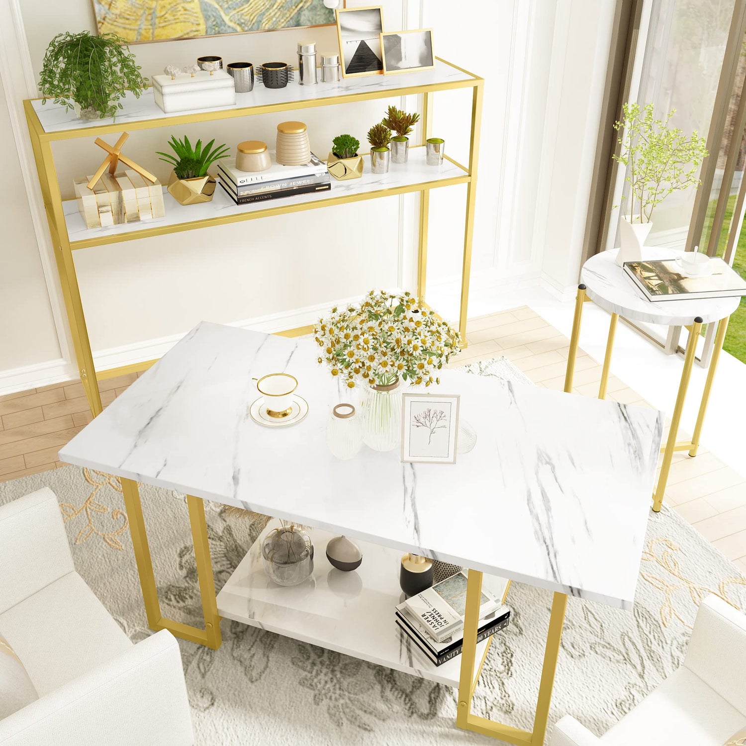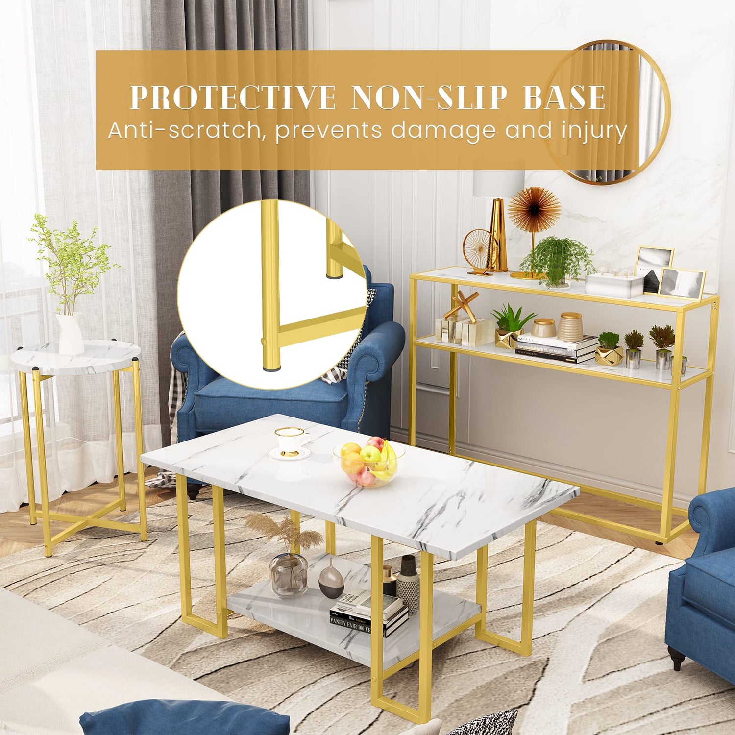 - Modern End Table: This 3-piece coffee table, console table and side table have three tiers of shelving, and the spacious marble top provides huge space for remotes, magazines, vases, and managing living room, lightweight package The design makes it easy to move. This coffee table set is perfect for various rooms in the home, such as the living room, dining room and home office etc.