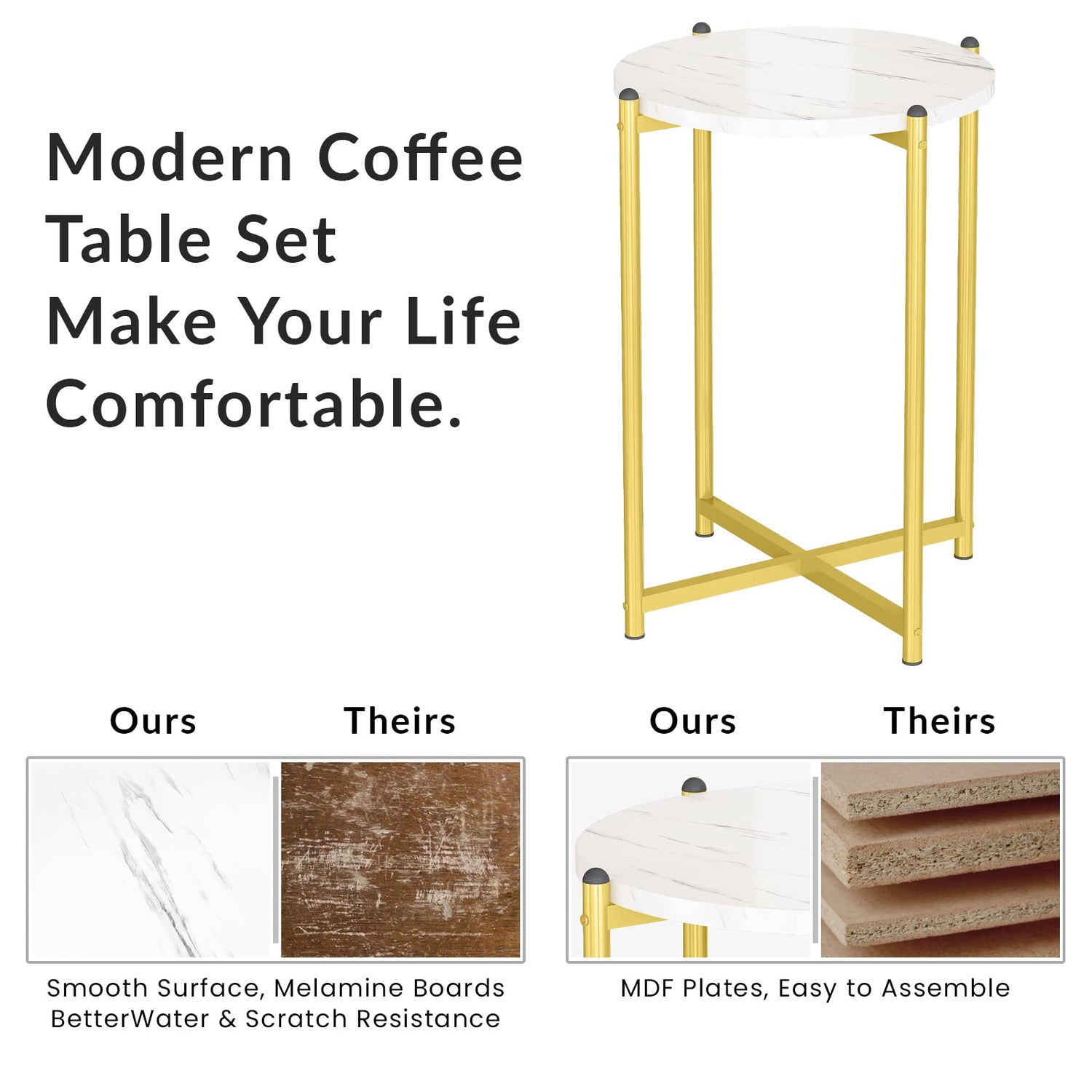 - Faux Marble Coffee Table: Our 3-piece coffee table set is crafted with a premium faux marble finish and powder-coated iron frame for a modern and vintage finish. Designed with crisp, clean lines and rich finishes, it brings elegant style to your living room and blends beautifully with any home decor.