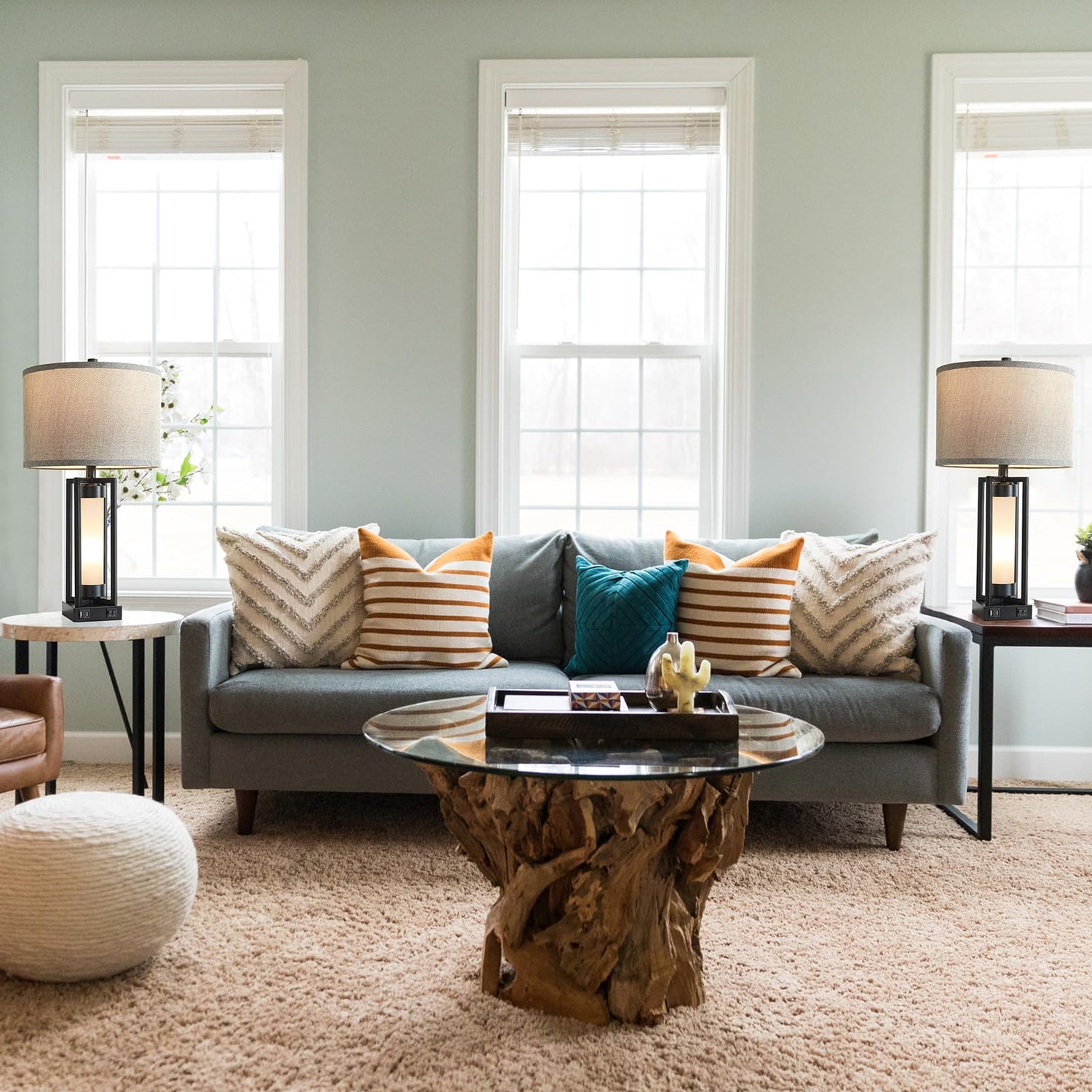 Set of 2 Modern Table Lamp for Living Room with 2 USB Ports, Contemporary Nightstand