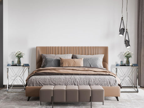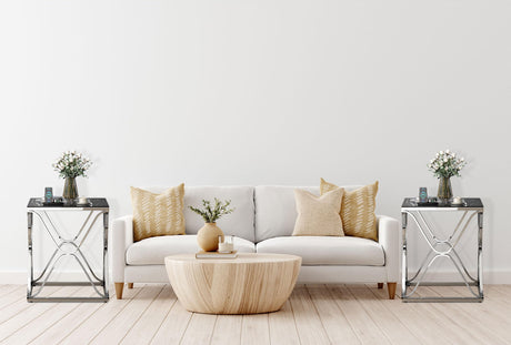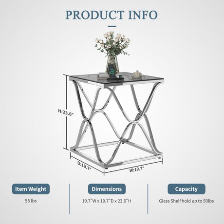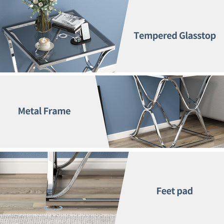 Glass End Table for Living Room, Silver Side Table with Tempered Glass Top