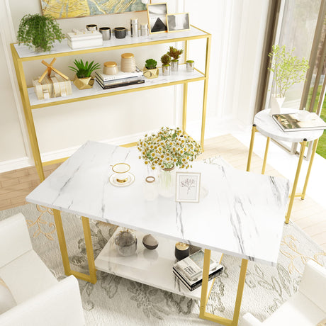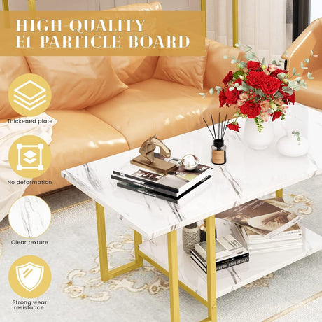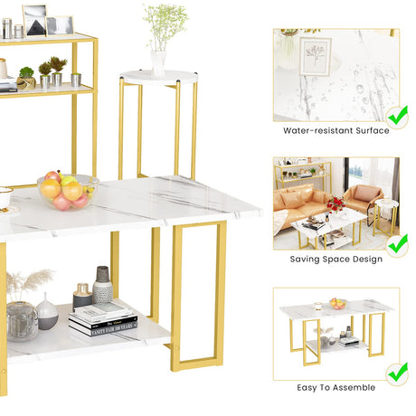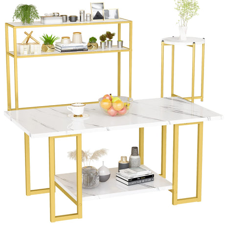 Coffee Table Set of 3, Modern 3-Piece Table Set Faux Marble Coffee Table
