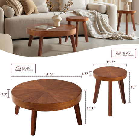 2-Piece Modern Farmhouse Living Room Coffee Table Set, Nesting Table Round