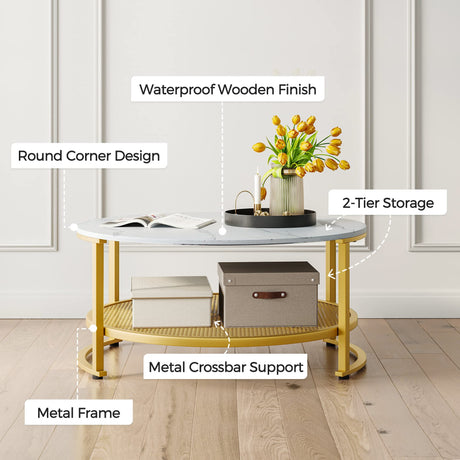 35.4" Round Coffee Table Living Room Faux Marble Top Coffee Cocktail Table
