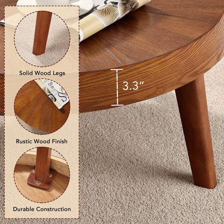 2-Piece Farmhouse Living Room Coffee Table Set Rustic Boho Round Coffee