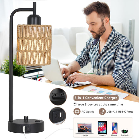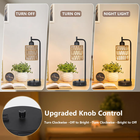 Rattan Table Lamps for Living Room Set of 2, Boho Bedside Lamps with LED Bulbs