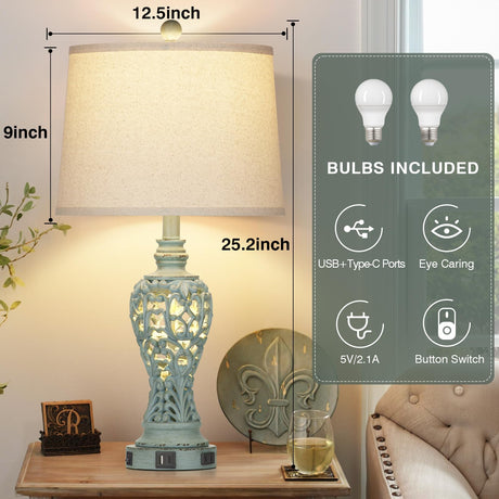 Set of 2 Rustic Farmhouse Table Lamps for Living Room Bedroom, Vintage Bedside Lamp