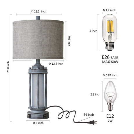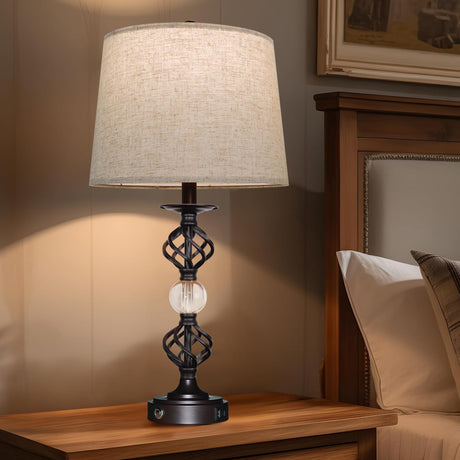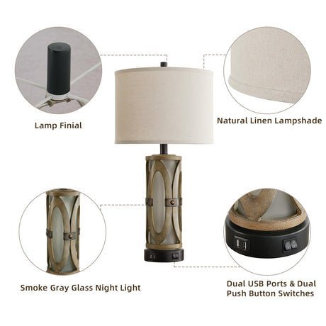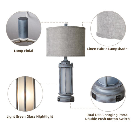 27.75" USB Table Lamp Set of 2 Antique Retro Nightstand Lamp for Bedroom Living Room