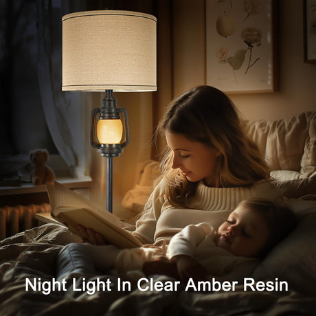 Set of 2 Rustic Table Lamps for Living Room, Farmhouse Vintage Nightstand Lamp with 2
