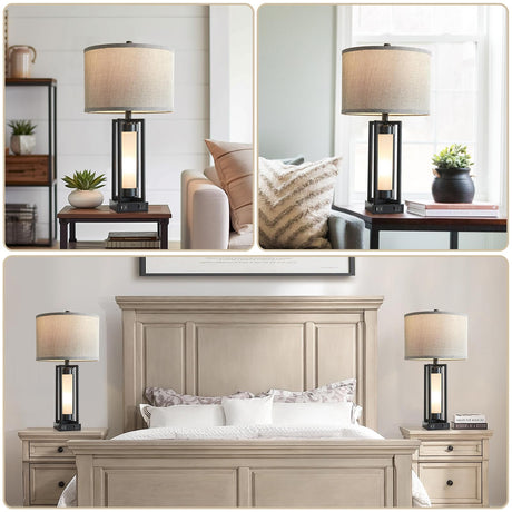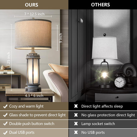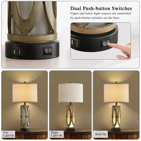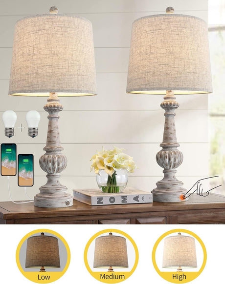 Table Lamps Set of 2 for Living Room, Rustic Farmhouse Bedroom Nightstand Lamp with Dual USB Ports,
