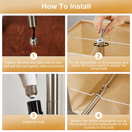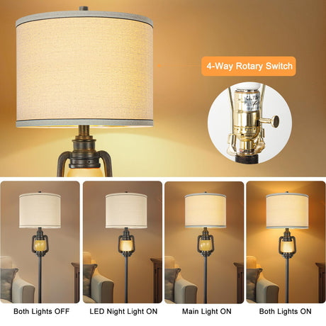 Floor Lamp for Living Room Vintage Standing Lamp with Linen Fabric Hardback Shade