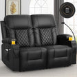 Loveseat Recliner Sofa, 2 Seater Reclining Loveseat Sofa, PU Leather Recliner Loveseat Couch, Modern Recliner Chair for Living Room, with Cup Holder and 2 Cell Phone Holder, USB Ports, Black