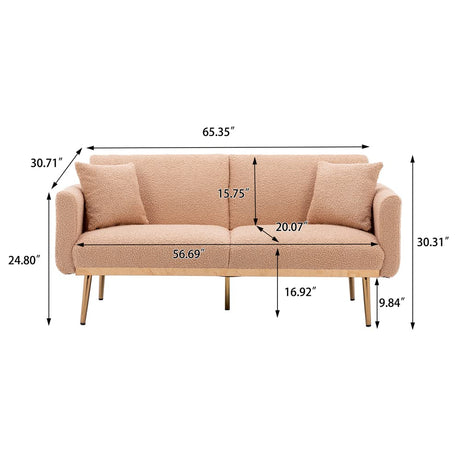 65.35" Accent Sofa, Convertible Futon Sofa Bed with Metal Feet
