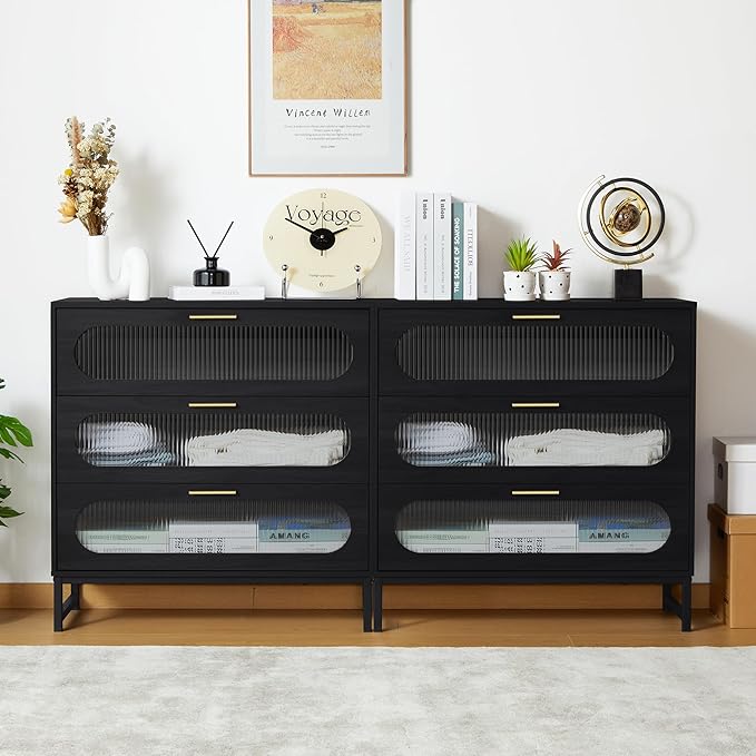 3 Drawers Dresser, Wooden dresser with Tempered Glass Drawers and Metal Handle - Black is backordered and will ship as soon as it is back in stock.