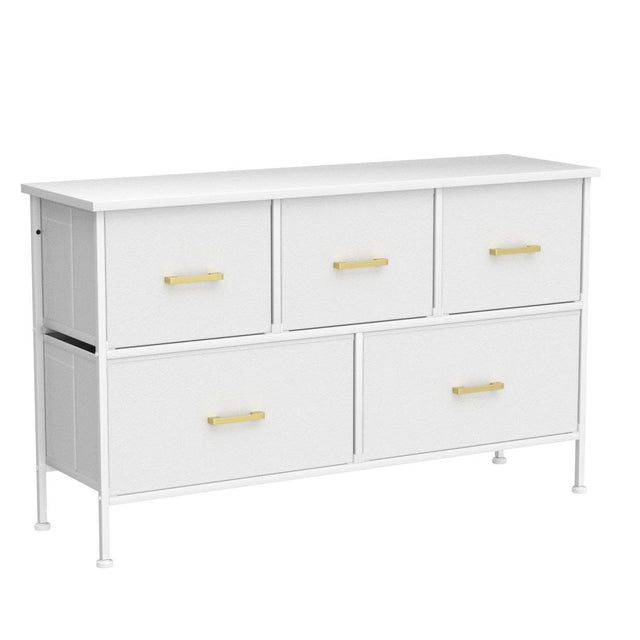 - Make Room Neat and Clean: This wide dresser consists of 5 drawers of different sizes and each could hold 12 lbs. 3 medium drawers are great for storing cables, game discs, CDs, as well as personal items such as socks and underwear. 2 Large Drawers could considerately sorting diaper, clothes, pants, shirts, jeans, dresses, and more items as you like.