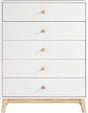 - Featuring a neutral white finish and classic wooden knobs, this dresser is perfectly neutral and versatile, allowing it to easily coordinate with a wide variety of bed styles.