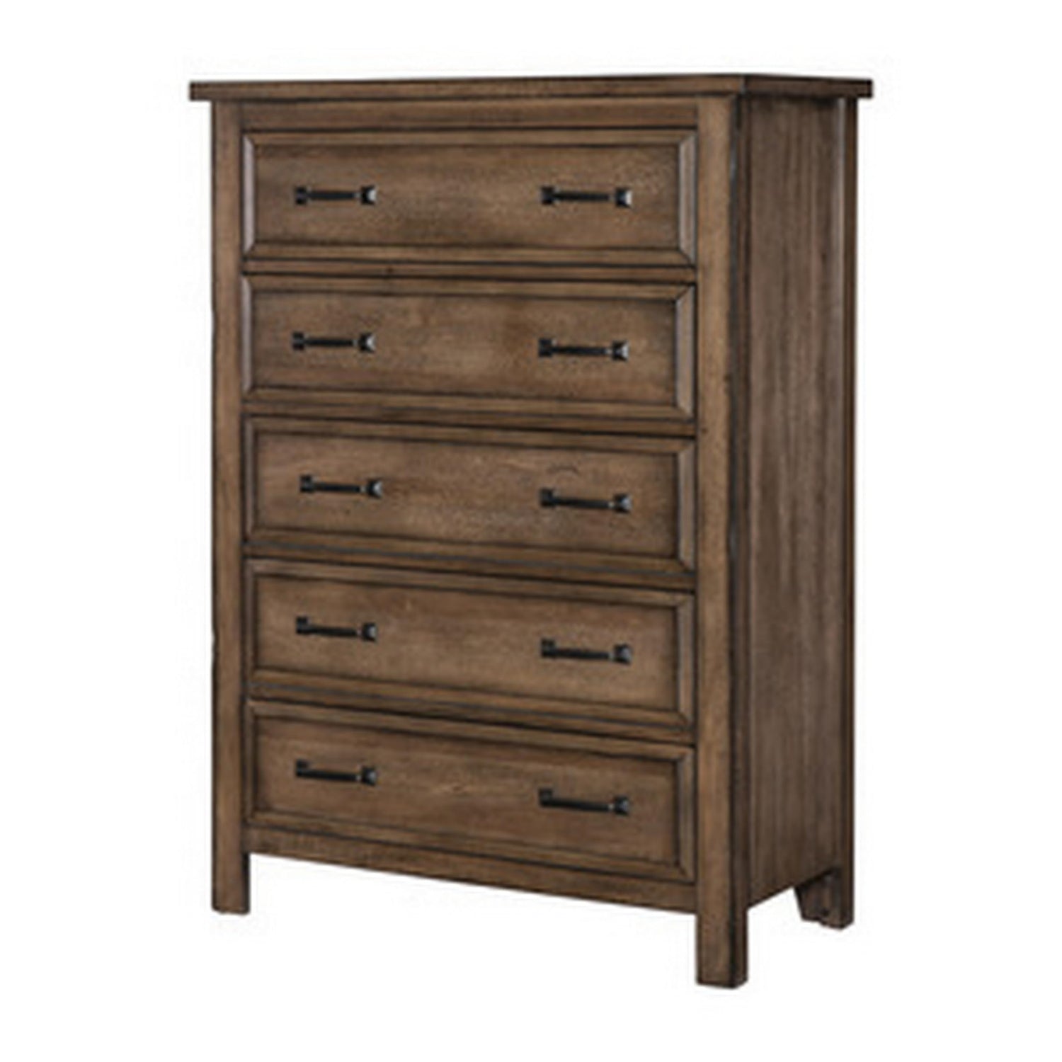 52 Inch Tall Dresser Chest, 5 Drawers, Metal, Light Wood, Brown