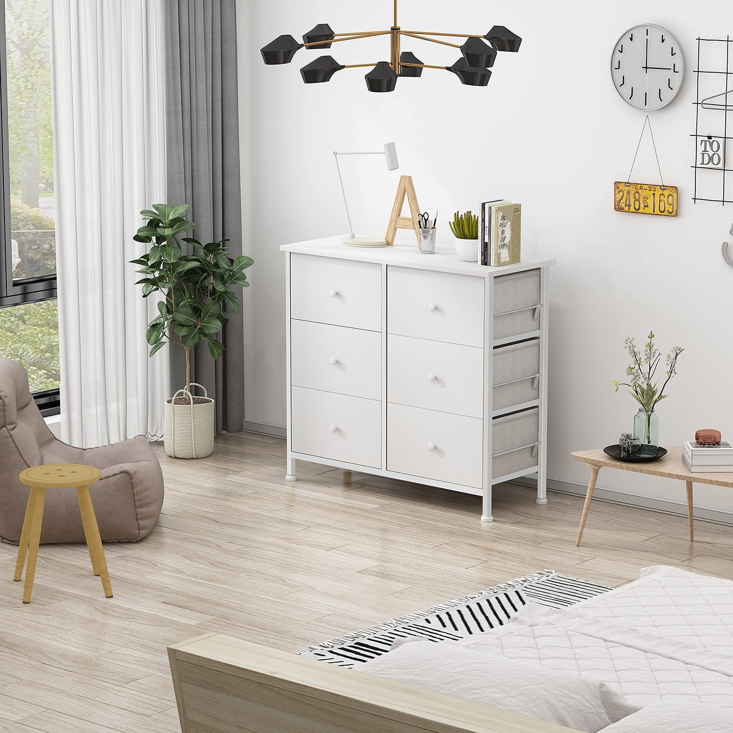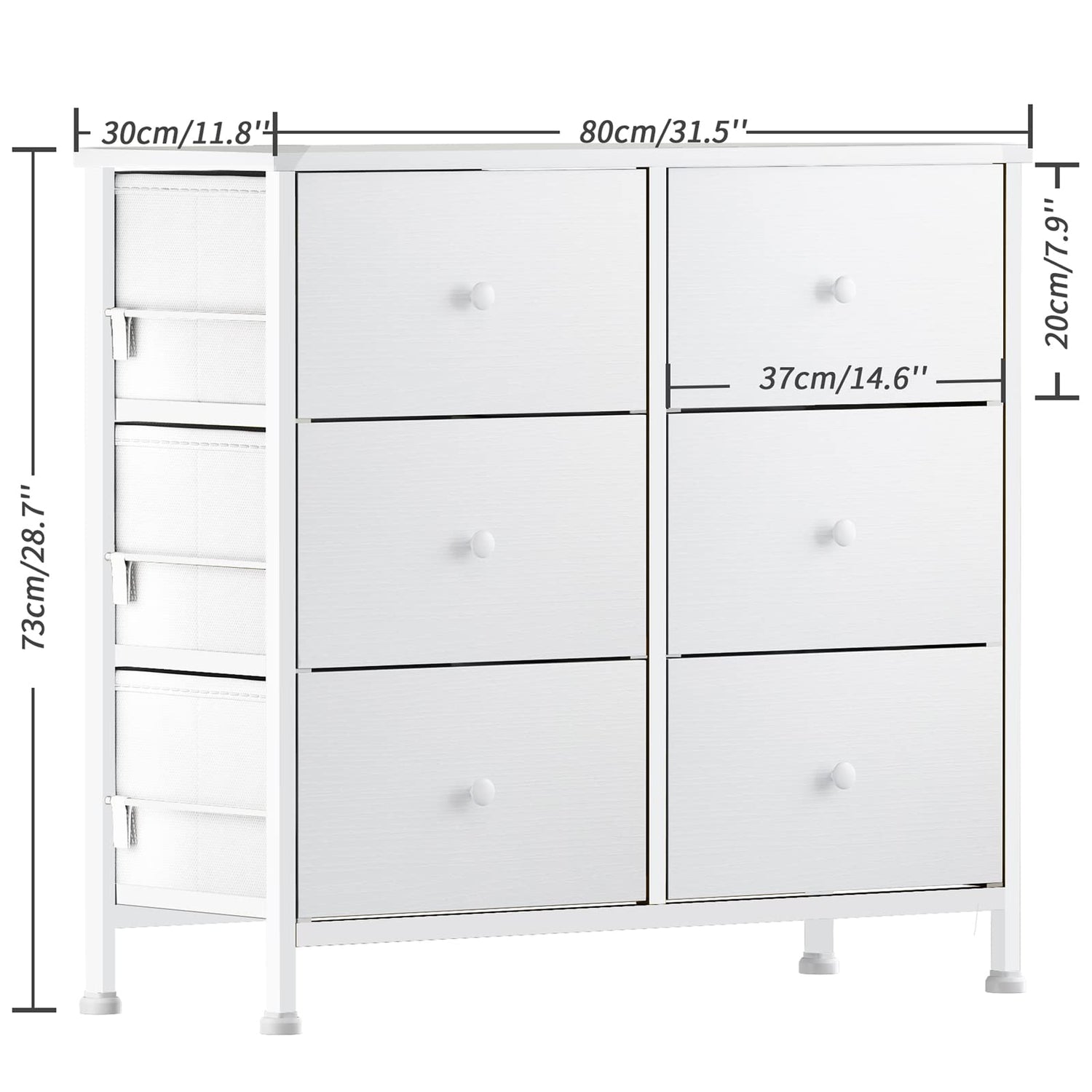 White Dresser for Bedroom 6 Drawer Organizers Fabric Storage Chest Tower