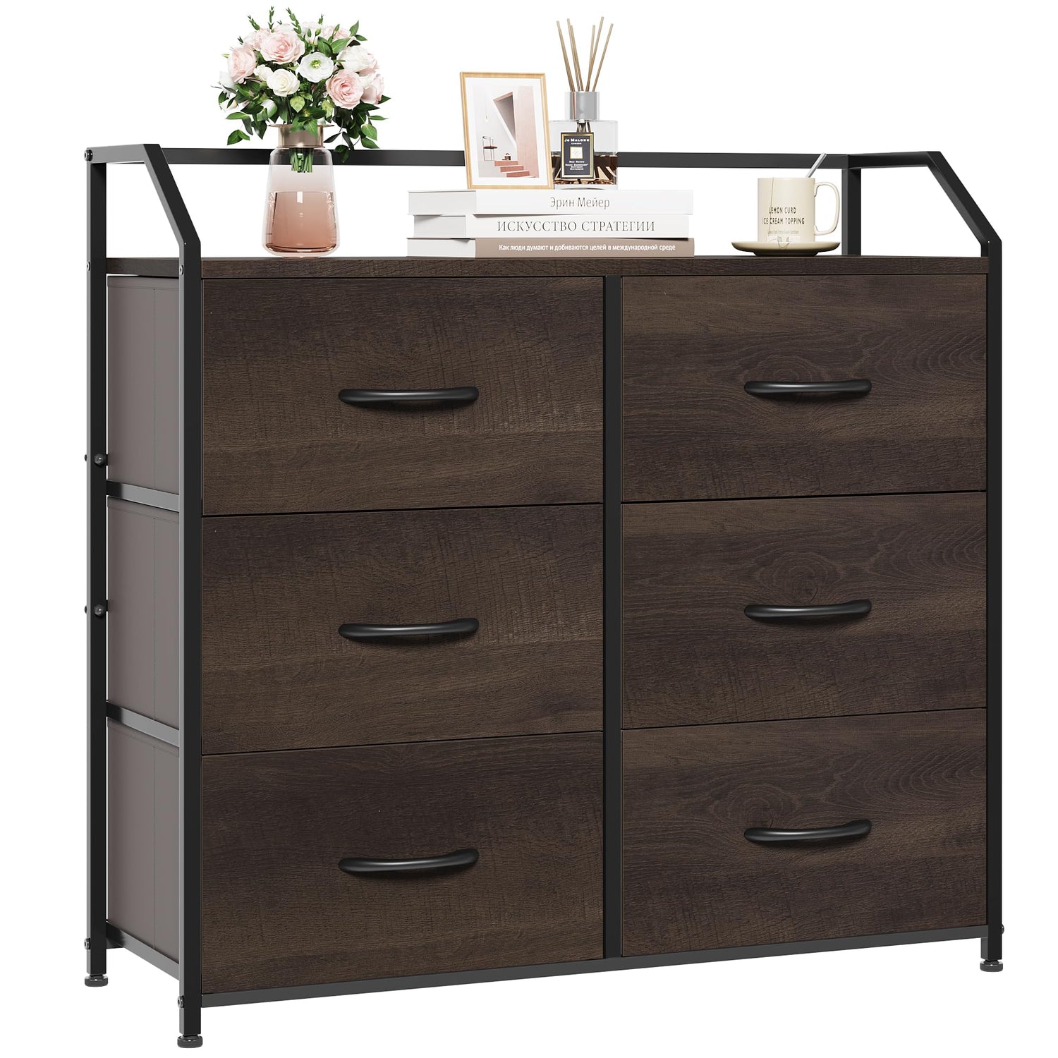 Dresser with 6 Drawers, Dresser for Bedroom, Wood Top Storage Tower, Fabric Organizer - Dark Brown is backordered and will ship as soon as it is back in stock.