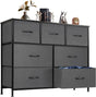 - Check FULL-size: This bedroom dresser features 7 fabric bins, providing ample space-saving storage for magazines, adult or children's clothing, toys, and more. The wooden top board can support up to 66 pounds and can even serve as a TV stand. Please confirm the dimensions of this 7-drawer dresser: 39"D x 11.8"W x 30"H.