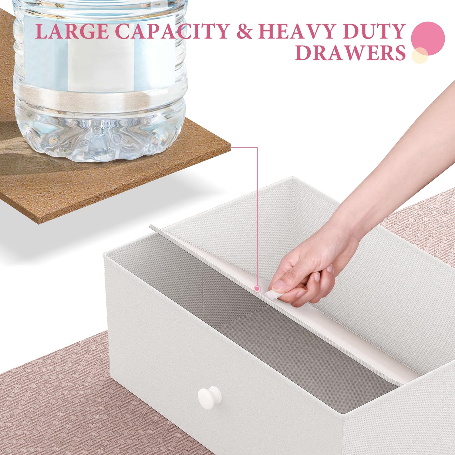 - White Dresser For Bedroom with Large and Versatile Storage. EnHomee white dresser sizes 41"W x 12"D x 44"H has 8 large, 4 medium drawers, this white dresser for bedroom provides a large amount of storage space. Large drawer holds 8 pants, 8 sweaters, 12 dresses, 6 hoodies, medium drawer holds 50 socks, 10 shirts, 15 diapers, for your reference. Easily manage tons of items with this dresser as each drawer has a 12 lbs capacity. Stronger and larger drawers, for more storage options.