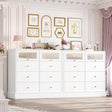 - Equipped with eight storage drawers, this white dresser effortlessly accommodates all sorts of small items, decorative pieces, or lighting solutions, ensuring your room remains clutter-free and stylish.