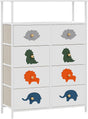 - It Features open shelf, wood surface, metal frame and cartoon animals Patten. 8 Drawers are easy to clean and made of breathable, waterproof fabric. Due to its lightweight design, the FRAPOW Tall dresser is portable and easily moved from room to room