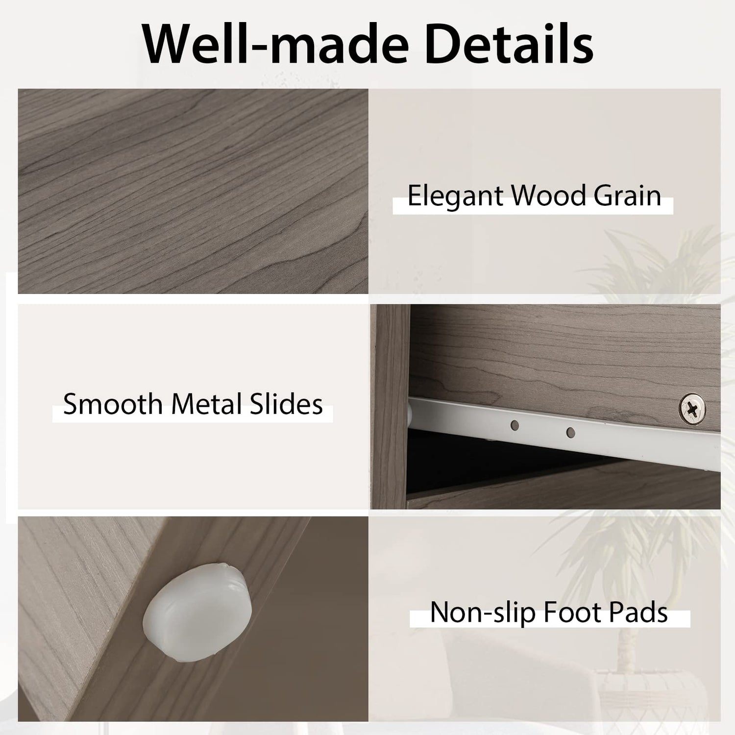 - High-quality Material & Easy Maintenance: Made of high-quality engineered wood with elegant wood grain, the storage dresser has an elegant appearance and a long service life. Its surface is smooth and waterproof, thus is easy to clean.
