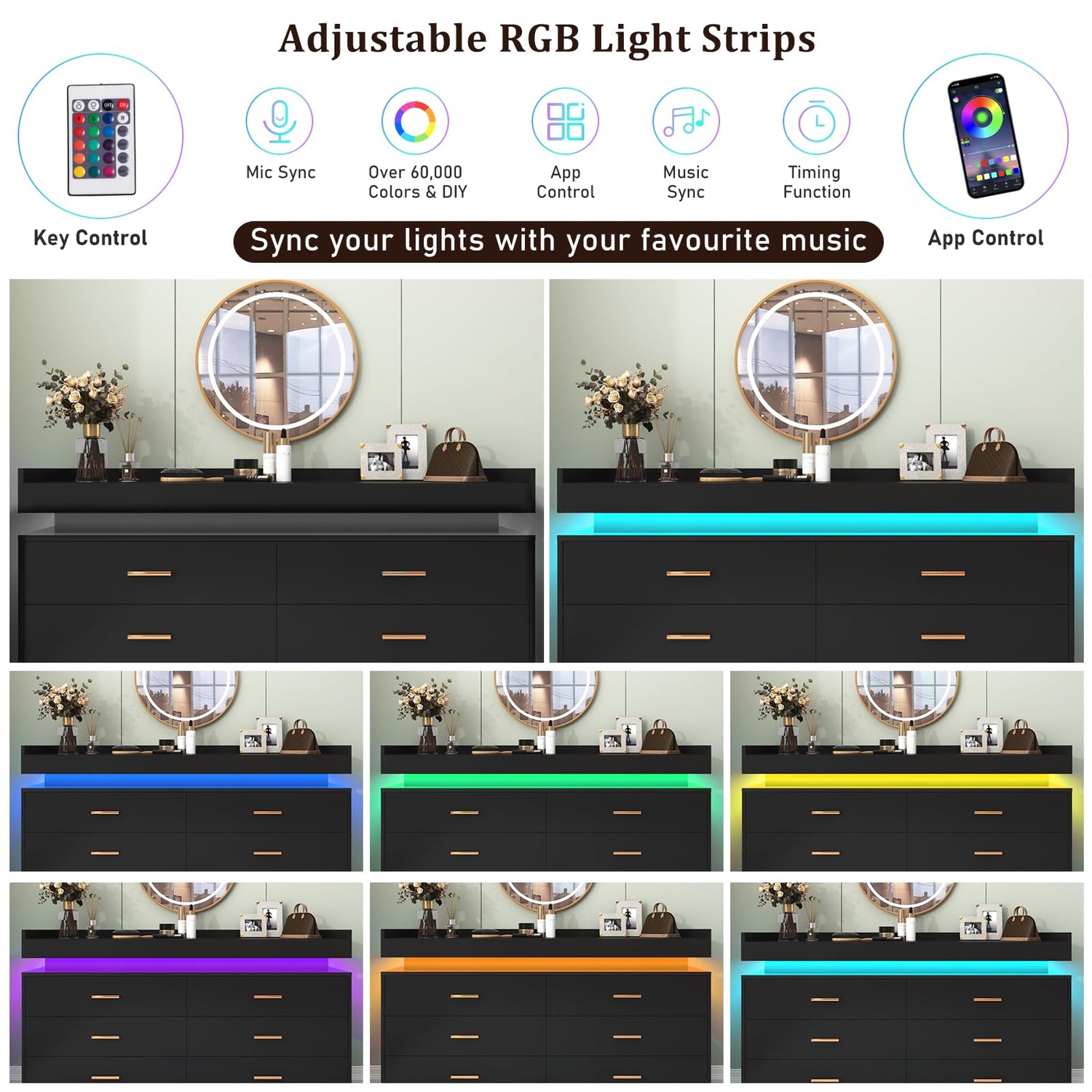 6 Drawer Dresser with LED Light, Modern Chest of Drawers - Black / 6 Drawer is backordered and will ship as soon as it is back in stock.