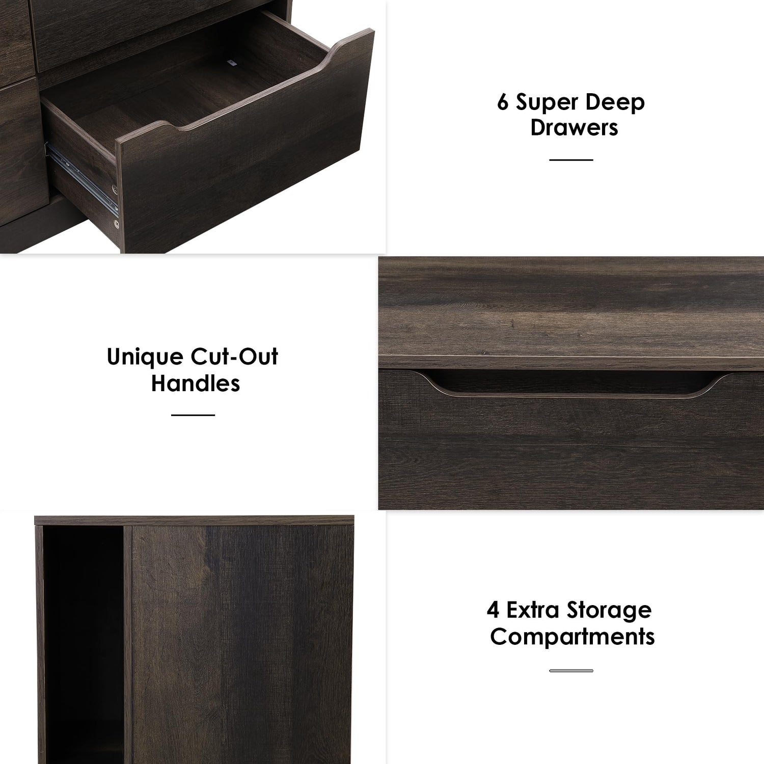 6 Drawer Dresser for Bedroom, Dresser with 4 Cubbies, Wood Chest of Drawers