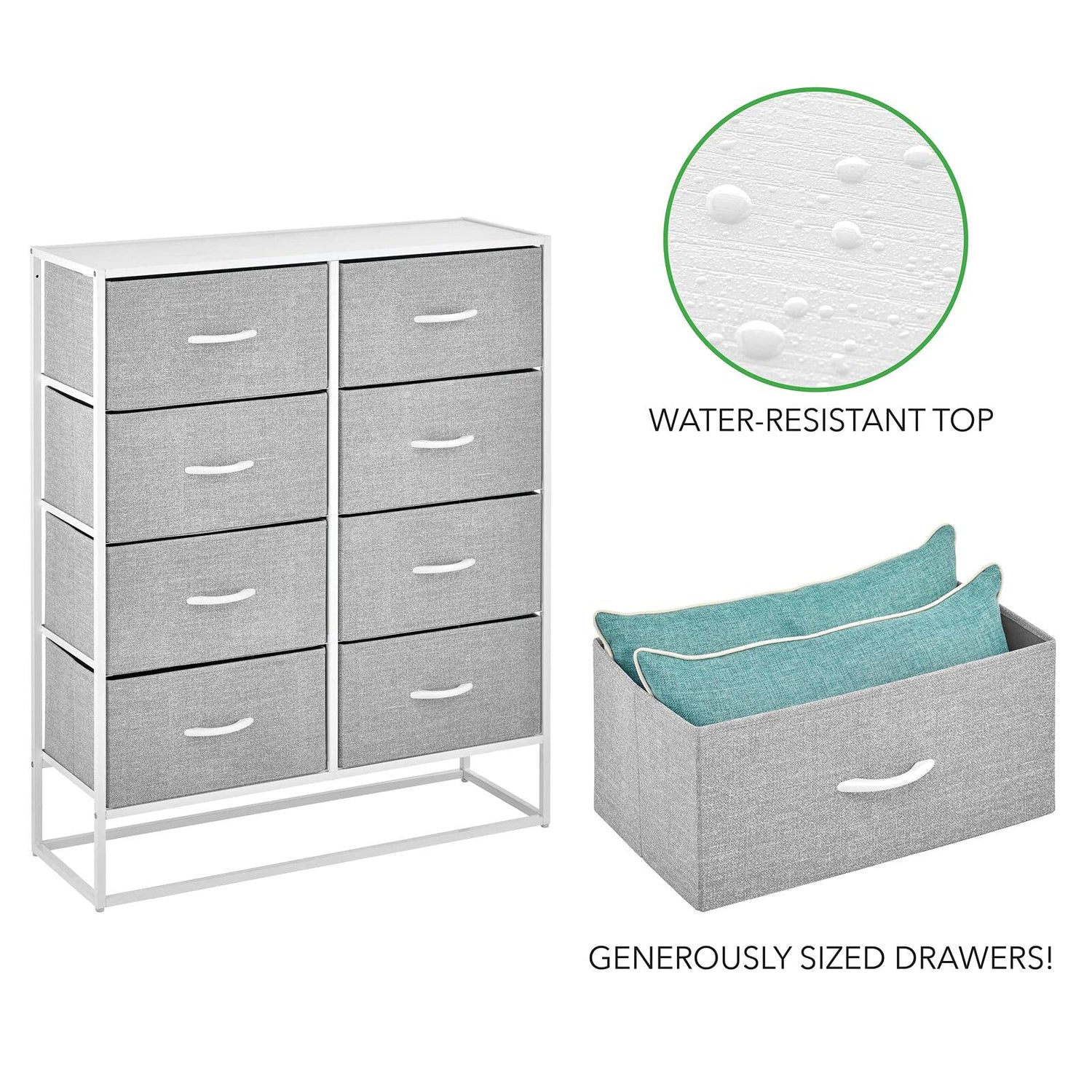 - 8 DRAWER CHEST Features 8 removable drawers; Use in or out of the closet and keep clutter under control by storing all of your clothing and accessories in one convenient place; Store and organize workout gear, leggings, yoga pants, sweaters, linens and more; The vertical design fits easily in many locations throughout the home; Use as a dresser and keep your alarm clock, journal, glasses close at hand; Mix & match with other mDesign storage furniture for endless organizational possibilities