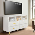 - With a simple and modern style, our shallow dresser can easily complement your home and office decor. Chic style with concise design constitutes a charming and modern look. As a TV stand is only suitable for TVs from 32" to 43".