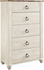 Willowton 5 Drawer Chest of Drawers, Two-tone Brown and Whitewash