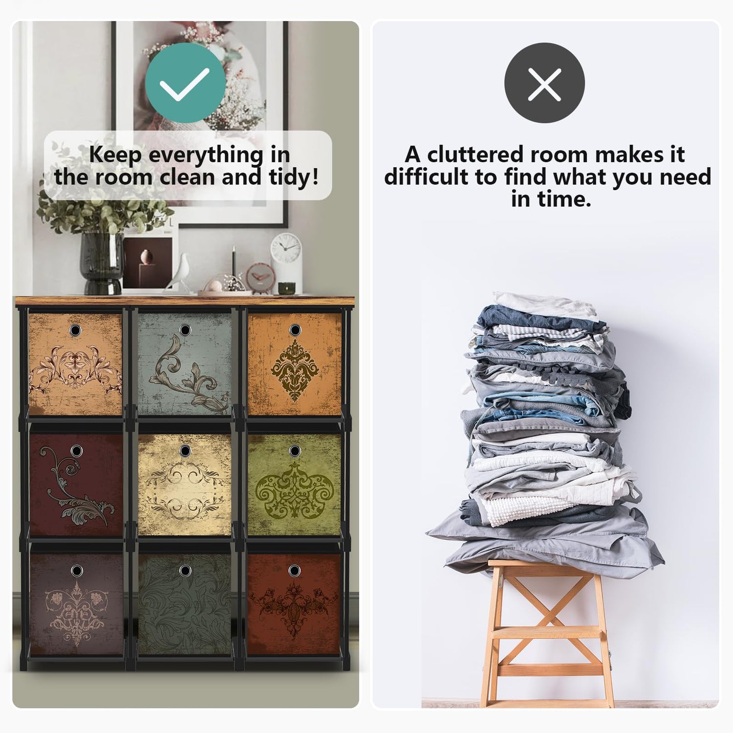 Fabric Dresser with 9 Drawers, DIY Cube Organizer for Closet, Storage Drawer Unit Chest