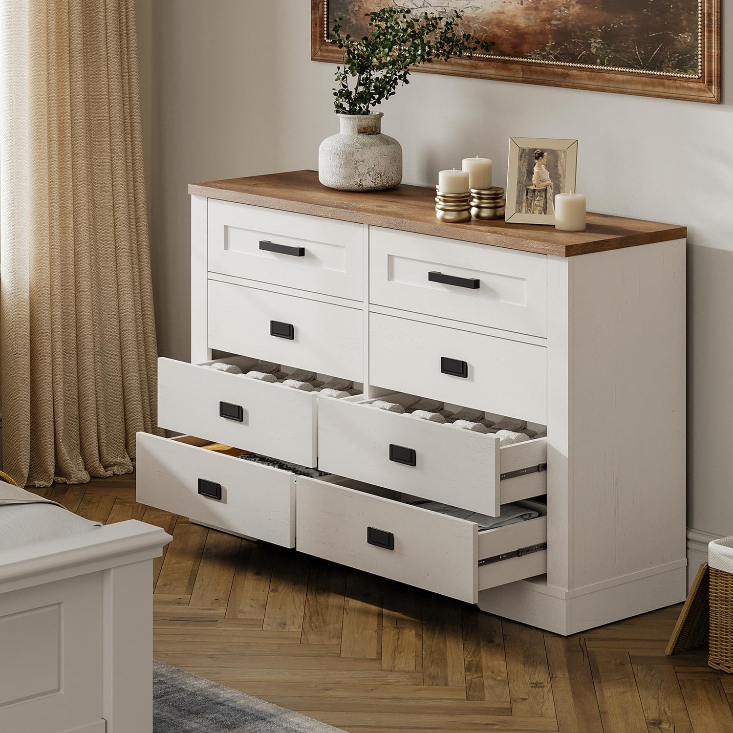 • The eight full-size drawers slide easily on metal ball bearings and can be used to keep your clothes neat and organized.Dresser measures 31.9'' H X 47.5'' W X 15.4'' D; Drawer Interior:3.9'' H X 19.2'' W X 11.25'' D