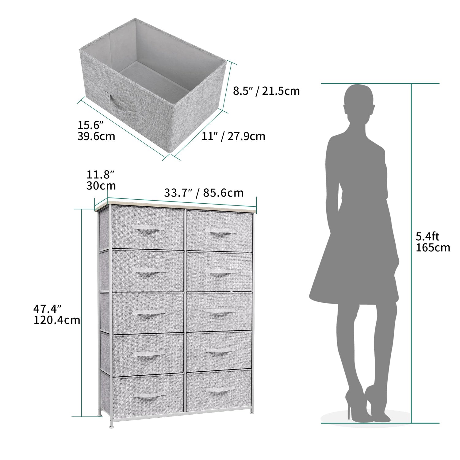 - LARGE CAPACITY- 10 drawers provide multiple storage options and ample room to make your living space neat and tidy; Overall dimensions: 33.7" L x 11.81" W x 47.4" H.Drawer dimensions: 15.6" L x 11" W x 8.7" H.