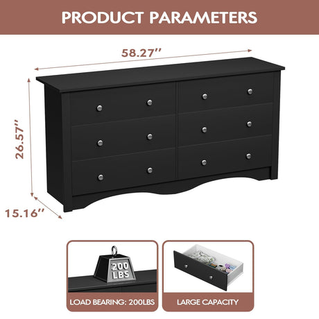 Dresser for Bedroom with 6 Drawers, Wide Chest Storage Organizer and TV Stand
