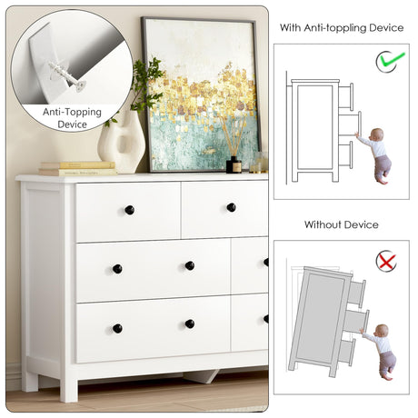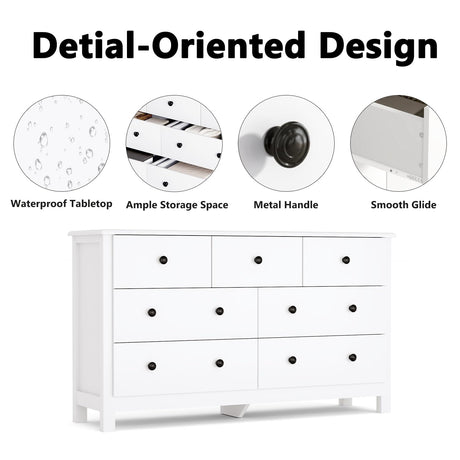 White Dresser for Bedroom, 7 Drawer Dresser & Chest of Drawer with Black Handle